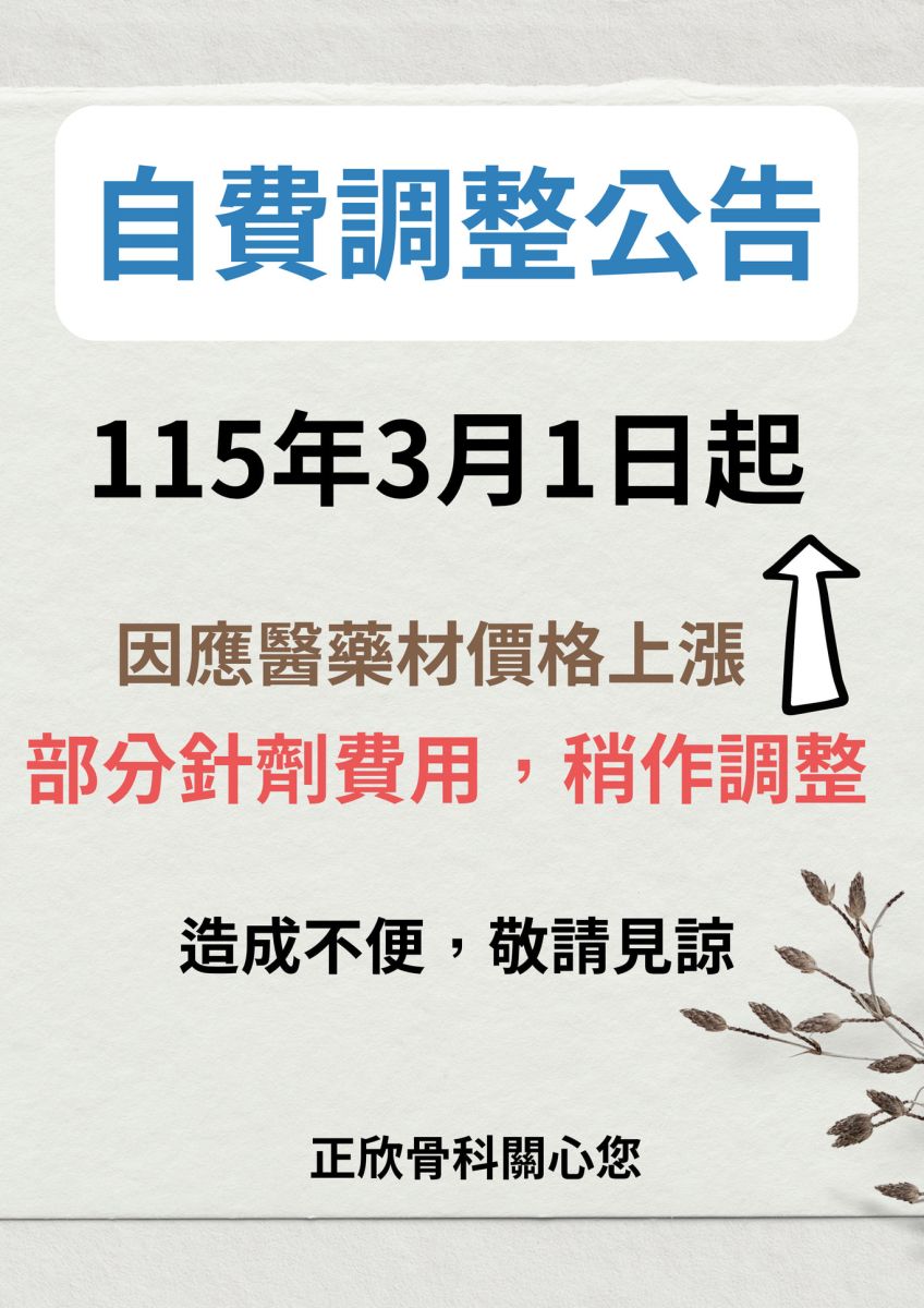 因應醫藥材價格上漲,部分針劑費用稍作調整