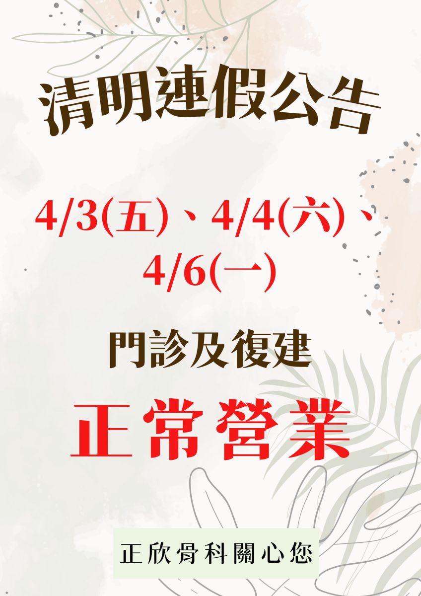 4/3(五)、4/4(六)、4/6(一)清明連假